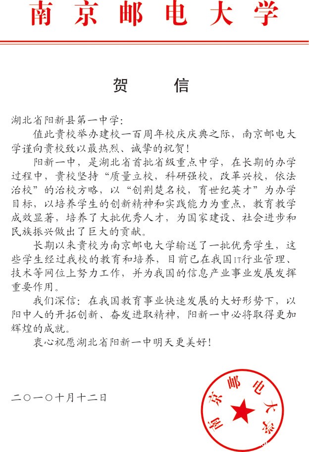 南京邮电大学贺信