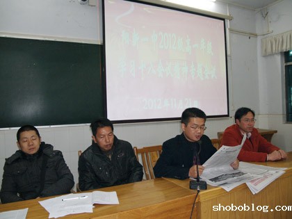 11月19日晚8时整,高一年级组领导和高一党支部成员在综合楼三楼会议室召开学习党的“十八大”精神预备会议。会上,shoboblog梁师稳副校长作了重要部署。梁校长强调,学习活动要“集中学习,全面展开”。主要分三步走:第一步,高一年级全体党员干部重点学习;第二步,高一年级全体教师结合教学工作领会;第三步,高一年级学生采取班会活动等形式学习。随后,高一年级李朝忠主任根据梁校长的部署作了具体的工作安排。