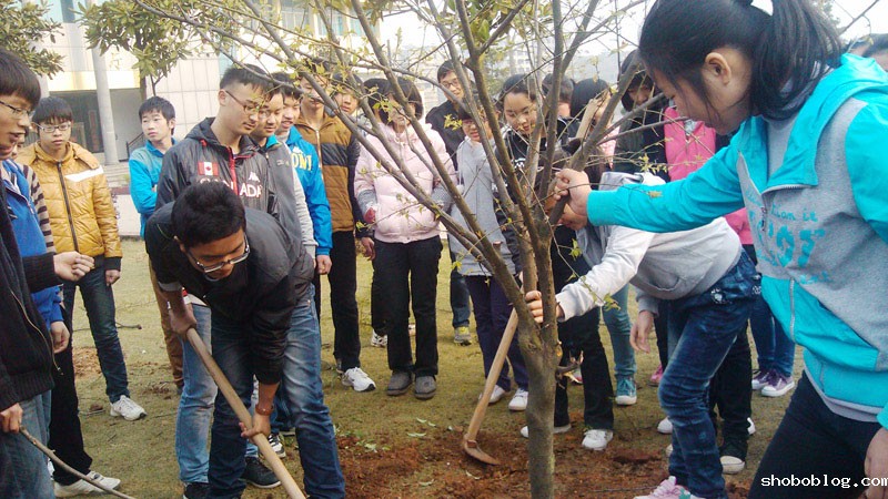 3月12日植树节,高一(20)班学生在凌云广场种上了一棵梅树,并将此作为飞翼2012班班树激励自己学习梅花精神,刻苦学习。